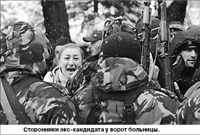 Позже оппозиционный активист Эллина МАРЗОЕВА сообщила, что мужчины, находившиеся вместе с Джиоевой в ее штаб-квартире, были арестованы силовиками. “Здание штурмовали омоновцы, также среди нападавших были сотрудники госохраны, которые работали еще при КОКОЙТЫ (Эдуард, экс-президент Южной Осетии. - Ред.), но руководил всеми человек в штатском. По нашим данным, он может быть из российской ФСБ”, - отметила Марзоева.
