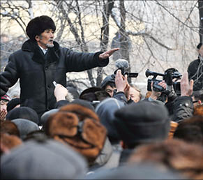 Выступает член политсовета ОСДП Болат АБИШЕВ. Он кричит в мегафон требования: справедливое расследование трагедии в Жанаозене, свободу ВИНЯВСКОМУ, САПАРГАЛИ и КОЗЛОВУ. К программным требованиям митинга добавляется еще одно - освободить водворенных в РОВД Медеуского района лидеров оппозиции. Затем по очереди начинают выступать рядовые граждане, активисты, даже поэты. Инга ИМАНБАЙ, общественный деятель и журналист, громче, чем выступала, ругается с оцеплением.