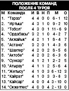 Напомним результаты и других матчей этого тура: “Шахтер” (Караганда) - “Жетысу” (Талдыкорган) - 5:1, “Тараз” - “Актобе” - 1:0, “Ордабасы” (Шымкент) - “Кайсар” (Кызылорда) - 1:0, “Акжайык” (Уральск) - “Сункар” (Каскелен) - 1:1, “Иртыш” (Павлодар) - “Атырау” - 0:0, “Тобол” (Костанай) - “Окжетпес” (Кокшетау) - 3:1.