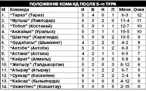 Надо сказать, что “Астана” не просто добыла очко, она помешала “Иртышу” возглавить турнирную таблицу. Ведь лидировавший со стопроцентным результатом “Тараз” проиграл в Талдыкоргане местному “Жетысу” - 0:2. Однако, несмотря на эту осечку, таразцы удержались наверху. Другой вопрос: надолго ли? Прошлогодние фавориты “Шахтер” и “Жетысу” начинают приходить в себя. Серьезно настроен “Тобол”, без поражений выступает “Ордабасы”, да и притормозивший в последние годы “Актобе” еще не сказал последнего слова.