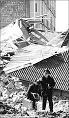 В Караганде владельцы бывших квартир рухнувшей секции дома № 7 (на снимке) микрорайона “Бесоба” не спешат подписывать договор цессии с горакиматом, так как нашли юридический казус: документ может лишить их права требовать компенсацию за утраченное имущество.
