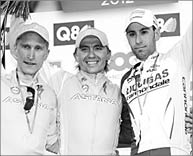 Казахстанский гонщик “Астаны” Максим ИГЛИНСКИЙ (на снимке - в центре) стал победителем гонки “Льеж - Бастонь - Льеж”. Вторым и третьим пришли к финишу итальянцы Винченцо НИБАЛИ из Liquigas-Cannondale и “астанчанин” Энрико ГАСПАРОТТО.