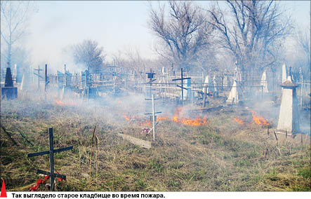 В этот раз пожар возник в центре кладбища. А в следующий - искра может разгореться около ограды, граничащей с автозаправкой!