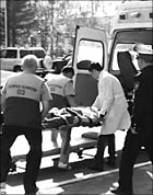 Но Щеглова судью уже не слышала - она, закрыв глаза, стала падать… Всех посторонних немедленно выпроводили из зала. Бригада врачей “колдовала” над больной минут десять, а затем ее вынесли из здания суда на носилках (на снимке).