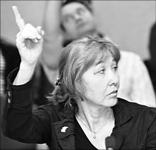 Выступивший следом Мурат Машкенов почти полчаса митинговал без знамени. Ценной в его спиче была, пожалуй, статистика. По его данным, за 2010 год в связи с трудовой деятельностью пострадали 2844 человека, из них 322 погибли. Как отмечает Машкенов, имеется тенденция роста этих печальных цифр. По его словам, необходимо принять целый ряд предложений Конфедерации труда. Среди них - предоставить отраслевым профсоюзам право законодательной инициативы, создать общественную палату при президенте, включить представителей профсоюзов с правом голоса в состав территориальных, отраслевых комиссий по вопросам борьбы с коррупцией, ввести практику общественных слушаний, возродить советы трудовых коллективов и так далее. Несколько раз помянув, что он участвовал в “круглом столе” при “Нур Отане”, Машкенов свернул свое выступление.