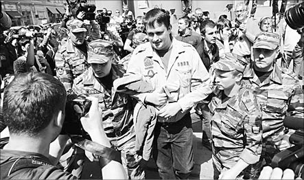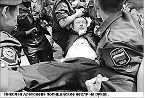Ближе к двум часам несанкционированная акция гей-активистов у Мосгордумы завершилась. Протестовали против обсуждения проекта закона о запрете пропаганды гомосексуализма. От Мосгордумы гей-активисты и их противники переместились к памятнику Юрию Долгорукому напротив здания мэрии Москвы. У памятника собралось большое количество сотрудников полиции. Здесь был задержан организатор московских гей-парадов Николай АЛЕКСЕЕВ. Он пришел к зданию мэрии. Его тут же окружили журналисты, однако Алексеев не успел ответить на вопросы представителей СМИ. Его поместили в автозак. Полицейским пришлось нести Алексеева в автобус на руках.