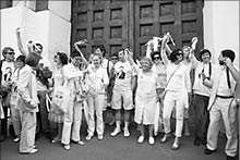 Активисты гей-движения приходили на акцию у Мосгордумы небольшими группами, раздавали интервью журналистам, некоторых после этого задерживали. Отметим, что к Думе пришли и несколько противников акции геев - православные активисты. У одного из них в руках был плакат “Москва - не Содом”.