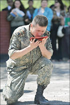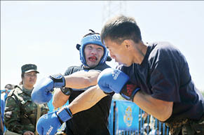 - Я второй раз сдаю экзамен, - признается новоиспеченный “краповик”, 29-летний прапорщик Нургали ШОЛПАНКУЛОВ. - Самым сложным для меня было окончание второго дня и завершающий марш-бросок на 8 километров. Сознание просто отключалось. Выходя на ринг, я уже ни о чем не думал, просто знал, что надо продержаться. Эти девять минут мне показались вечностью.