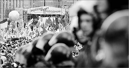 Тем не менее этой старой тактики оказалось недостаточно, чтобы охладить пыл оппозиционеров, в рядах которых оказалось немало представителей нового среднего класса, сформировавшегося за последние годы в результате того, что Путин навел порядок в экономике страны. Таким образом, власти пришлось перейти на более жесткие методы.