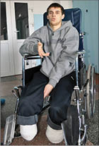 Два сотрудника Есильского ОВД, после общения с которыми житель села Ясновка Иван РОЖНОВ (на снимке) остался без обеих ног (см. “Жертва дознания”, “Самих за решетку?” и “Держиморды из Ясновки”, “Время” от 14.2, 16.2 и 29.2.2012 г.), на днях арестованы с санкции суда.