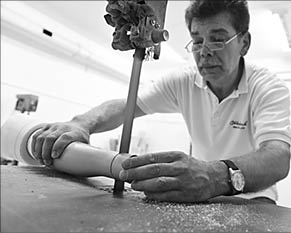 - Случай этой женщины не сложный в техническом исполнении, но и не простой по медицинским показаниям, потому что ампутация конечности была два года назад, и это ее первый протез, - рассказывает Дитер. - Мышцы, естественно, атрофированы. К сожалению, у нас только неделя для работы. За это время мы постараемся дать пациентке несколько практических навыков, чтобы она смогла пользоваться протезом.