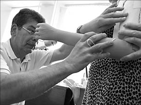 ...В одном из помещений центра яблоку негде упасть. Народ следит за каждым движением немецкого специалиста Дитера ШТОРКА, который вместе с коллегами проводит первую примерку “умного” протеза одной из демопациенток.