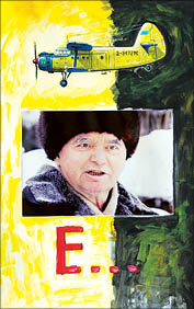 - А почему рядом с фотографией Бельгера самолет? - спрашиваю художника.