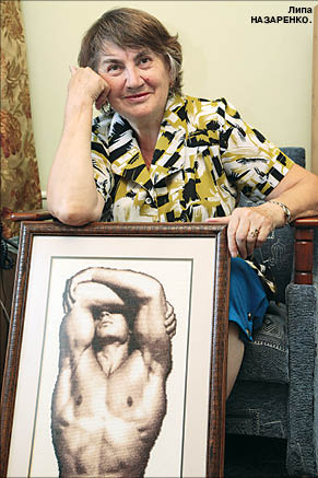 - Что может быть прекраснее грации и изящества обнаженного женского тела, - считает Липа Владимировна. - Мне нравится создавать картины в жанре ню, и в этом нет ничего такого. На выставке подходили люди разных возрастов, и никто не сказал, что это пошло. Причем в вышивке счетным крестом надо быть очень внимательным, потому что, например, если ошибусь на клеточку в лице, то может получиться один глаз выше другого. Еще одна из особенностей - это соблюдать оттенки. Например, в картине “Всадница” я три раза собачку переделывала. Распарывала и заново вышивала. Не нравился мне оттенок, и все. Жалко было, но что делать - для меня красота и качество работы важнее. Моя мечта - научиться самостоятельно создавать схемы. Это большой труд, но усилия того стоят. Порой видишь какую-то картинку и хочется ее вышить, а схемы нет.