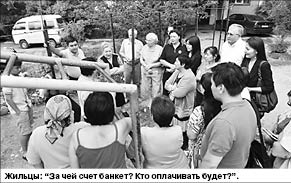 - Женщина за свой счет хочет благоустроить двор. Ни денег, ни помощи ни у кого не просит, а вы вставляете ей палки в колеса, - убеждает собравшихся юрист Алмат ЖУСУПОВ, - С 15 июня по 15 сентября по поручению акима Алматы Ахметжана ЕСИМОВА в городе проводится конкурс “Лучшее озеленение-2012”, в котором есть номинация “Лучший двор”. Разве плохо, если ваш двор будет участвовать в этом конкурсе и станет красивее, чем был?
