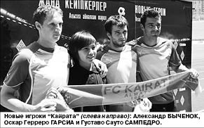 Этот матч вызвал у алматинцев большой интерес. Дело в том, что буквально накануне в составе “Кайрата” появились три новых футболиста: испанцы Оскар Герреро ГАРСИА и Густаво Сауто САМПЕДРО , а также белорус Александр БЫЧЕНОК.