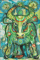- Когда работа создана одним человеком - она подписана, но большая часть картин - это результат совместного труда до 25 человек. Кто-то из ребят хорошо работает кистью, кто-то замечательно вышивает, клеит. Есть такие, кто вырезает из кожи, они и изготавливали чешую для аппликации “Дракон”. Кто не может работать руками - трудился ногами. Есть ребята, у которых проблемы умственного характера, они не могут долго сосредоточенно над чем-то работать. Такие трудятся полчаса, а потом должны заняться чем-то другим. Но если поначалу я помогала им во всем, то теперь ребята, работающие в мастерской, совершенно самостоятельны от замысла до воплощения работы. Я только помогаю рисовать глаза у героев их работ.