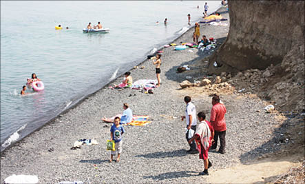 В Коктуме, что в 10 километрах езды от Акши, природа поживописнее. В остальном - все то же самое: отсутствие нормальных дорог, благ цивилизации (тех же туалетов) и огромное количество свалок бытовых отходов. Тем не менее побережье буквально усыпано отдыхающими, среди которых, как ни странно, немало россиян.