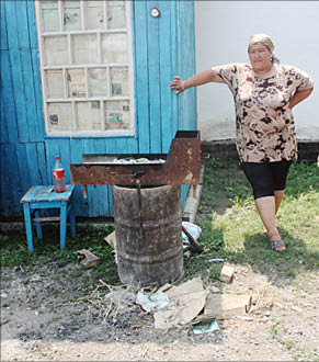 По разбитой проселочной дороге едем вдоль берега. Почти на каждом доме висят таблички, зазывающие туристов, при этом всякий хозяин обещает “незабываемый отдых”. Снять комнату на одного человека с питанием можно за три тысячи тенге в сутки - с телевизором, кроватями, мебелью, холодильником, но... все удобства - на улице. При этом найти свободные места в разгар сезона практически невозможно. А цены на базах отдыха кусаются: суточное проживание может обойтись от 6 до 44 тысяч тенге - как с питанием, так и без.