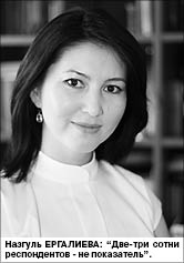 Исполнительный директор ЦИПП Назгуль ЕРГАЛИЕВА утверждает: для отражения полноценной картины общественных настроений нужны широкомасштабные затратные исследования с четко поставленной задачей, проведенные несколько раз, чтобы можно было отследить динамику. А одиночные опросы пары-тройки сотен респондентов вряд ли будут репрезентативны.