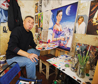 Айбека РОЗАКОВА (на снимке) женщины вдохновляют и... побаиваются. Уж слишком буйное у художника воображение и специфические фантазии. Айбек, как и положено настоящему гению, малюет шедевры в крохотном подвале под шелест канализационных труб.