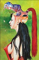 Единственная “приличная” работа в мастерской художника, без крови и половых органов, - это “Невеста”. Девушка в роскошном традиционном головном уборе с невероятно холодными глазами.