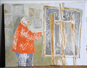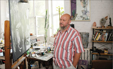 Художник Андрей НОДА (на снимке) выглядит очень суровым. Он умеет строго смотреть на собеседника, задающего дурацкие вопросы, упрекает в некорректности, уличает в необразованности, кряхтит и с удовольствием пьет чай. С медом, который собрали соседские пчелы на его же участке.