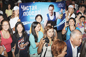 “Женщина, милая, ну куда ты прешь? Ведь родишь прямо здесь в толпе, а дочку после этого придется Ильей назвать”, - пытался остановить беременную даму, штурмующую VIP-зону Алматинского аэропорта, один из охранников. Но все уговоры были напрасны: народ жаждал увидеть своего героя - двукратного олимпийского чемпиона Илью ИЛЬИНА, прилетевшего из Лондона. Ажиотаж был сумасшедший! Организаторы этого мероприятия просто растерялись, не зная, что предпринять. Пресса была отрезана от пресс-центра. В то же время на пресс-конференции “блистали” агашки, апашки и детишки каких-то непонятных чинуш. Все они пытались буквально разорвать на мелкие кусочки кызылординского батыра, который, похоже, сам слегка опешил от такой всенародной любви. Думаю, на лондонском помосте ему было значительно легче. Но тем не менее на несколько вопросов кучки прорвавшихся в аэропорт журналистов Илья все же нашел силы ответить.
