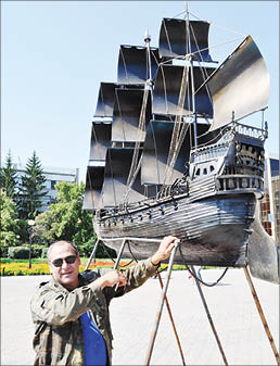 Петропавловский мастер железных дел Рафиз ХАФИЗОВ (на снимке) установил перед акиматом города стальную модель парусника “Баунти”. Подарок получился со смыслом.