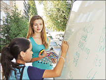 В Петропавловске возле библиотеки имени Сабита МУКАНОВА бывшая школьница и будущая студентка Татьяна ПОНОМАРЕВА (на снимке) проводит на улице уроки американского английского для ребятишек.