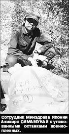 - По нашим данным, на этом участке захоронены 18 человек, мы нашли пока тела одиннадцати, трое из них были в деревянном гробу, а остальные просто завернуты в ткань. Работа продолжается, - рассказывает сотрудник департамента помощи жертвам войны Министерства здравоохранения и соцтруда Японии Тосио КОНУМА. - Еще одно массовое захоронение находится на левом берегу Текелинки, также три могилы обнаружены вниз по течению реки.