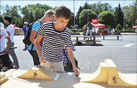 На площади Астана выросли увлекательные и полезные кварталы города подростков, где можно было пройти курсы вождения на машине, попробовать себя в актерском мастерстве, освоить азы катания на скейтборде, покидать мяч в баскетбольное кольцо.