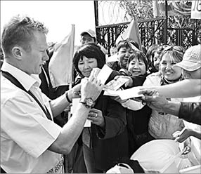 Это был, пожалуй, один из немногих случаев, когда на встречу высокого гостя местным властям не пришлось собирать народ в приказном порядке, а автомобилисты с пониманием отнеслись к перекрытию всех улиц в центре города.