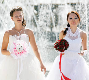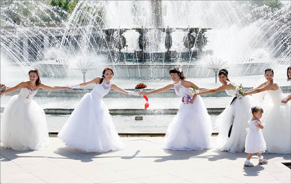 Участницей необычного флешмоба могла стать любая леди - независимо от возраста и семейного положения. Замужние, одинокие, разведенные - на период фотосъемки все девушки стали просто счастливыми невестами. Причем самой юной, Анастасии ЛЫШТВА, едва исполнилось три года. Компанию ей составила пятилетняя Аня ДИАЛЕКТОВА.