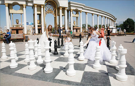 Для начала девушки устроили танцевальный марафон, в котором красиво кружились возле фонтана, затем они решили сыграть в шахматы. Когда же им все наскучило, устроили настоящие забеги за женихами, причем чужими.
