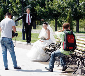 В назначенное время возле входа в парк появилась невеста, за ней - еще и еще. Причем девушки были без женихов, и толпа зевак тут же начала выдвигать разные версии происходящего.