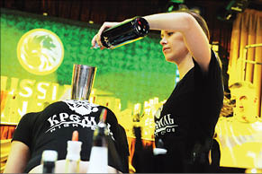 Надо сказать, что нынешний турнир собрал мастеров стойки не только со всего Казахстана, но и из соседней Киргизии. Анна НАЗАРОВА и Ильхимия НУРУЛЛИНА из Бишкека впервые продемонстрировали барменское искусство не за стойкой бара, а прямо среди публики. Не все получалось гладко: руки тряслись, лед вместо шейкера летел на пол, но на качестве приготовленных напитков это никак не отразилось. Кстати, именно напиток девчонок, который они назвали “Бардак”, был признан самым вкусным. Они же взяли и приз зрительских симпатий за оригинальное выступление.