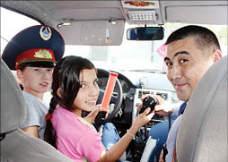 Инспектора дорпола провели необычное занятие для детей-сирот. Старший инспектор батальона дорожной полиции Куаныш ИЗБАСАРОВ (на снимке) едва успевал отвечать на вопросы ребятни, которую интересовало решительно все - от устройства спецтехники до карьеры полицейского. Устраивая столь необычные занятия, костанайские инспектора надеются снизить показатели детского травматизма на дорогах: с начала года с участием детей здесь совершено 46 ДТП, в которых один ребенок погиб и 52 получили ранения. По вине детей случилось уже семь аварий.
