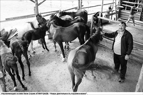 - Я благодарен чабанам и птичникам, - продолжает г-н Атмурзаев. - Они верят в порядочность Кайрата, не ропщут по поводу пятимесячной задержки зарплаты и надеются, что скоро все благополучно решится. Зима на носу, скоро в пески будем спускать скот. В пути всякое случается, каждый год до 20 лошадей в пути гибнут: то волки или медведи загрызут, то болезни одолеют. Многие разводят лошадей по принципу: купи-продай. Или голов 50 держат для скачек, призы берут и все. Но это же не коневодство. Мы хотим, чтобы у нас в стране как раньше табуны лошадей ходили. Из-за рубежа скот не завозим, только свою казахскую породу размножаем. На следующий год Кайрат планировал привезти из Москвы холмогорскую породу гусей. Он любит свою работу, но, видимо, появились недоброжелатели...