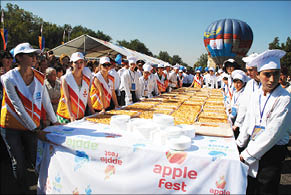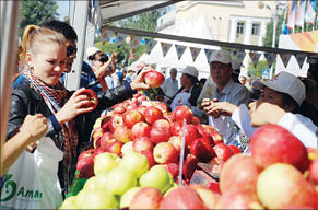 От разнообразия “запретных плодов” на фестивале яблок глаза разбегались, а желудок призывно урчал. На установленных прямо на площади прилавках шла бойкая торговля фруктами. Немалый интерес вызывали и новые сорта яблок, выведенных казахстанскими селекционерами.
