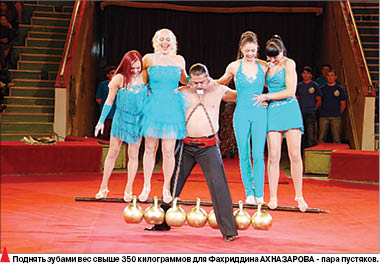 Когда ведущий объявил выход этого “железного человека”, зал взорвался аплодисментами. А после того как силач поднял зубами несколько гирь весом 350 килограммов, публика просто взревела. Но самое вкусненькое богатырь приготовил на десерт. На манеж выехал крутой внедорожник весом две с половиной тонны, а помощники вынесли несколько досок. Фахриддин лег на арену, сверху его накрыли этими досками, и... по нему поехал автомобиль. Зрители даже повставали со своих мест. В цирке повисла тишина. Но все прошло на ура. Хотя, как признался сам артист, бывали и экстремальные ситуации в его карьере.
