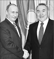 Президенты России и Казахстана Владимир ПУТИН и Нурсултан НАЗАРБАЕВ довольны взаимодействием регионов двух стран. В среду перед началом работы форума межрегионального сотрудничества казахстанский лидер сказал: “Будет заключено 27 договоров более чем на $2 млрд.”. В качестве примера президент Казахстана привел соглашение о строительстве блока Экибастузской ГЭС стоимостью $1 млрд. и соглашение в области автомобилестроения, благодаря которому производство автомобилей в Казахстане увеличится с 50 до 120 тысяч в год. Также президент Казахстана предложил разработать совместную программу использования космодрома Байконур.
