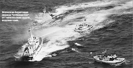 В минувший вторник, невзирая на предупреждения судов японской береговой охраны, тайваньская флотилия вошла в воды у Сенкаку. Рыбаки двинулись к самому крупному острову архипелага Уоцуридзима. Тогда японцы решили выдворить непрошеных гостей силой и принялись обстреливать нарушителей из водяных пушек. Тайваньцы открыли ответную стрельбу. В прямом эфире японского телеканала NHK за дуэлью могли наблюдать все желающие. К удовлетворению японских зрителей, через несколько часов противостояния тайваньские рыбаки покинули спорный район.