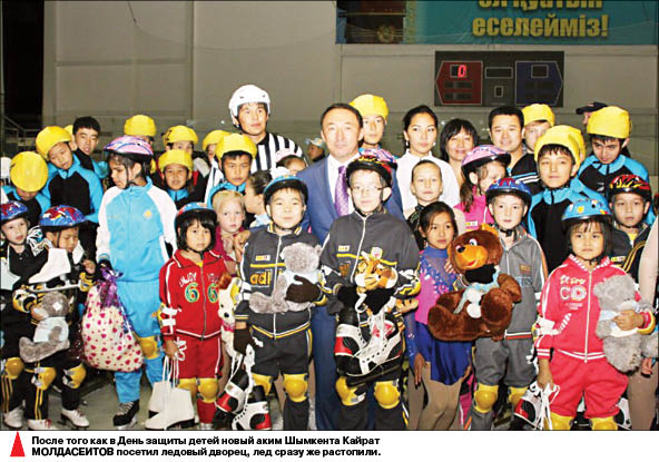 Однако не прошло и трех лет, как храму спорта вновь понадобился ремонт! По странному стечению обстоятельств именно в этот период “хозяйничать” в Шымкенте стал новый аким города Кайрат МОЛДАСЕИТОВ. Вот только говорить о деньгах, вложенных государством в очередную реконструкцию дворца, никто не захотел. Директор ледового дворца Куаныш АРГЫНБАЕВ, едва автор этих строк в телефонном разговоре с ним