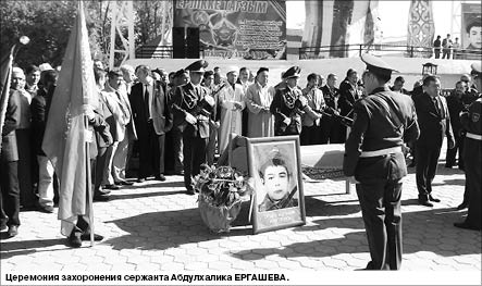 Этот факт был установлен недавно. А до этого солдат считался без вести пропавшим. Весной этого года бывшие афганские полевые командиры раскрыли Комитету по делам воинов-интернационалистов стран СНГ место захоронения сержанта Ергашева и пятерых его сослуживцев. Расстрелянные моджахедами, они были погребены в горах Афганистана - на перевале Саланг. Среди них был единственный казахстанец - Ергашев. Как рассказывает Марат Марденов, афганская сторона согласилась отдать его останки и останки еще двух солдат.