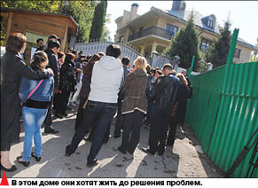 Хозяина монументальной виллы на месте не оказалось. Но дольщиков это обстоятельство не обескуражило, их маленький митинг становился шумным и настоящим. “Отдай наши квартиры!”, “Сколько можно терпеть!”, “Вот какие дворцы себе покупают на наши деньги!” - кричали взволнованные дольщики в высокий металлический забор, напирая на маленькую цепь из охранников.