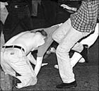 “Нас было человек 80, мы проводили вечеринку, - рассказал активист движения “Радужная ассоциация” Павел СОМБУРОВ. - Внезапно в помещение вбежали человек 20 в масках с криком: “Драку заказывали?!”. Они переворачивали столы и избивали посетителей. Многих из нас ранили. Потом нападавшие по команде одного из них резко ушли. Полиция прибыла на место происшествия лишь через полчаса”.