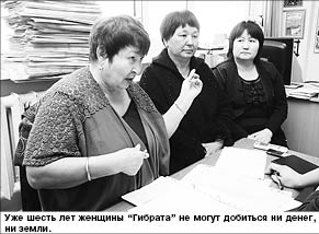 Когда-то “Гибрат” был одним из самых мощных и активных республиканских общественных объединений страны. В его состав входили сотни многодетных матерей, чьи права защищала председатель объединения Марпия БУТАБАЕВА (на левом снимке). Сейчас она отбывает наказание в одной из казахстанских колоний, а ее бывшие подопечные никак не могут получить землю, ради которой принесли в “Гибрат” десятки тысяч долларов.