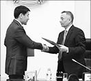 Министр транспорта и коммуникаций Аскар ЖУМАГАЛИЕВ (на снимке слева) и аким Карагандинской области Абельгази КУСАИНОВ (на снимке справа) подписали в минувшую субботу в Караганде два важных документа, которые будут способствовать развитию транспортно-коммуникационного комплекса региона в ближайшие годы.