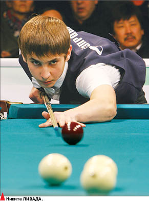 Сенсационной победой 15-летнего ростовчанина Никиты ЛИВАДЫ завершился в минувший четверг в Алматы чемпионат мира по комбинированной пирамиде. Юный кудесник кия обыграл в финале со счетом 6:3 двукратного чемпиона Европы украинца Александра ПАЛАМАРЯ. Наш Каныбек САГЫНДЫКОВ, трехкратный чемпион мира, на сей раз довольствовался третьим местом.